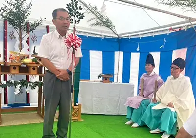 吉井地区へ進出の大松精機(株)赤磐工場の安全祈願祭が行われました。企業進出で雇用、地域経済、地域振興に大きく寄与いただけます。