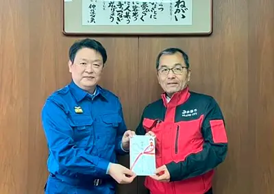 能登半島地震の支援で七尾市長を激励しました。職員派遣、物資・支援金の寄贈等を行っています。早期の復旧復興が望まれます。